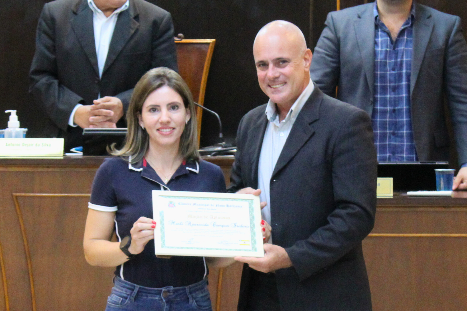 Baixar fotoVereador Kall Rigamonti entrega Moção de Aplausos em forma de Título a Marli Aparecida Campos Isidoro