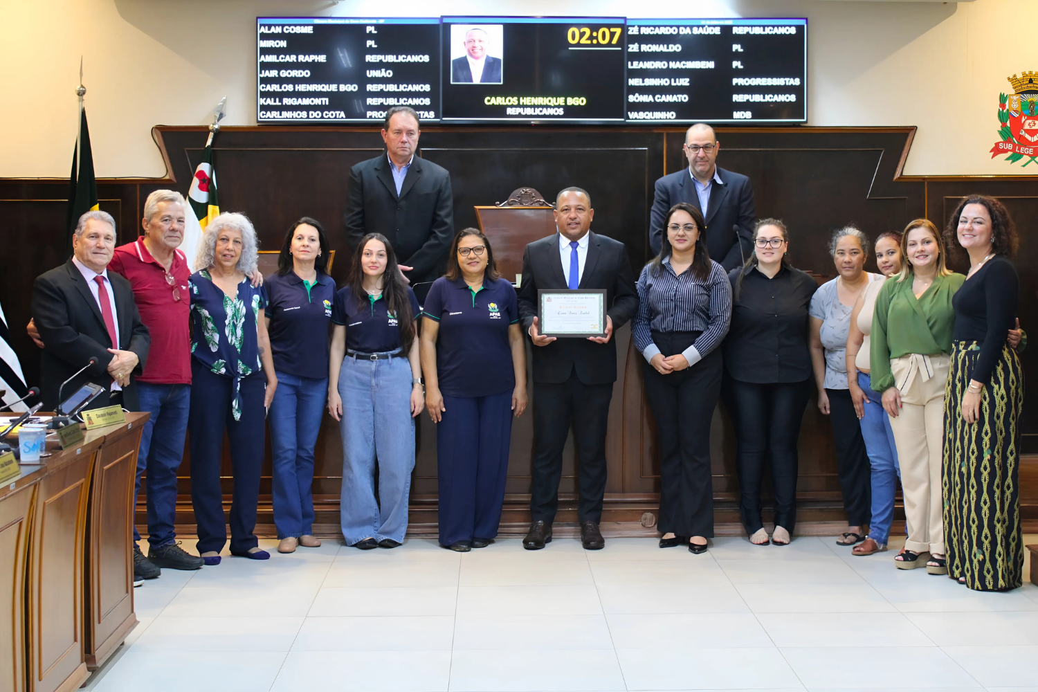 Baixar fotoVereador Carlos Henrique BGO faz entrega de Moção de Aplausos, em forma de Título, à Usina Santa Isabel pela contratação de quatro alunos da APAE de Novo Horizonte