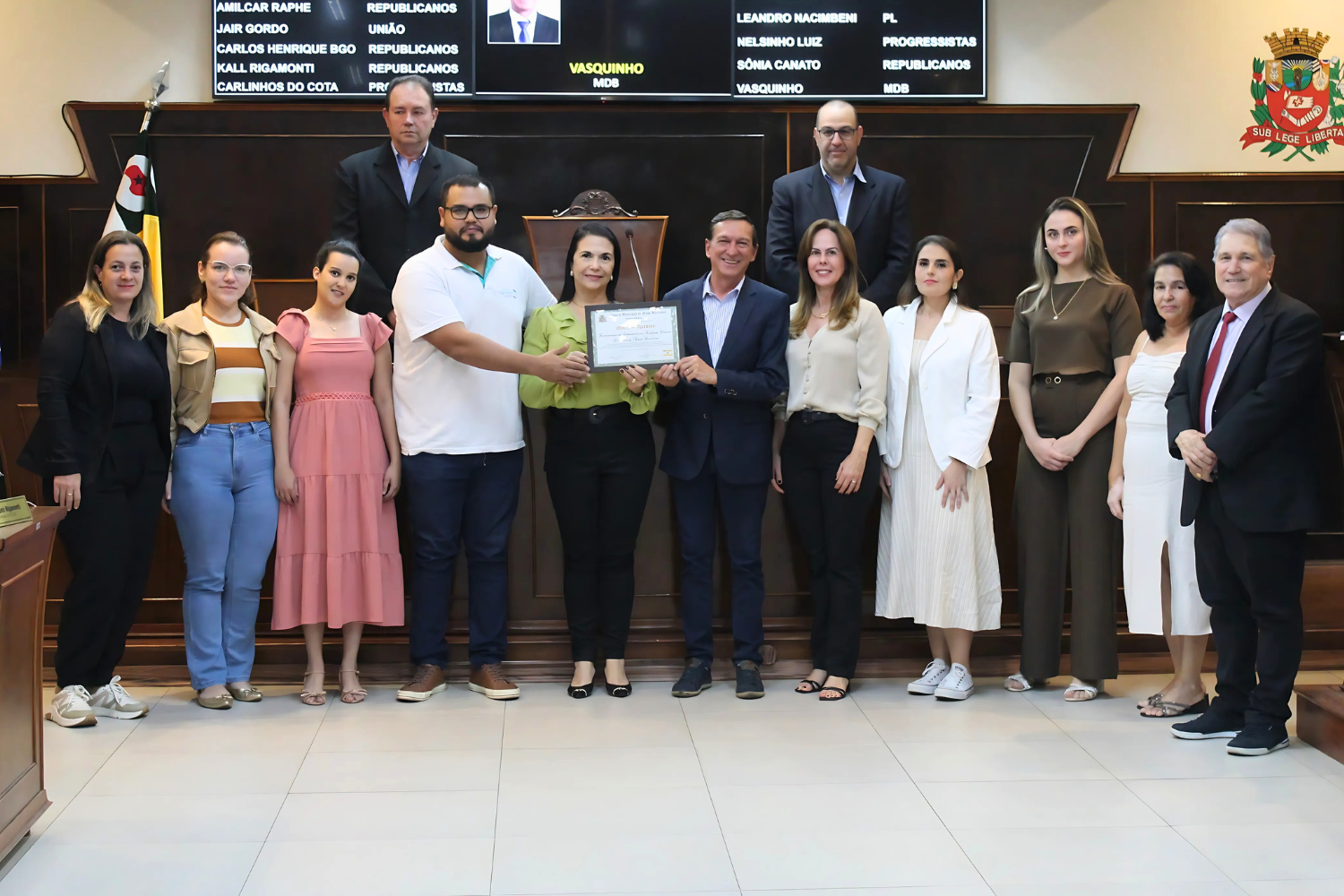 Baixar fotoVereador Vasquinho faz entrega de Moção de Aplausos, em forma de título, aos funcionários do Laboratório de Análises Clínicas da Prefeitura de Novo Horizonte