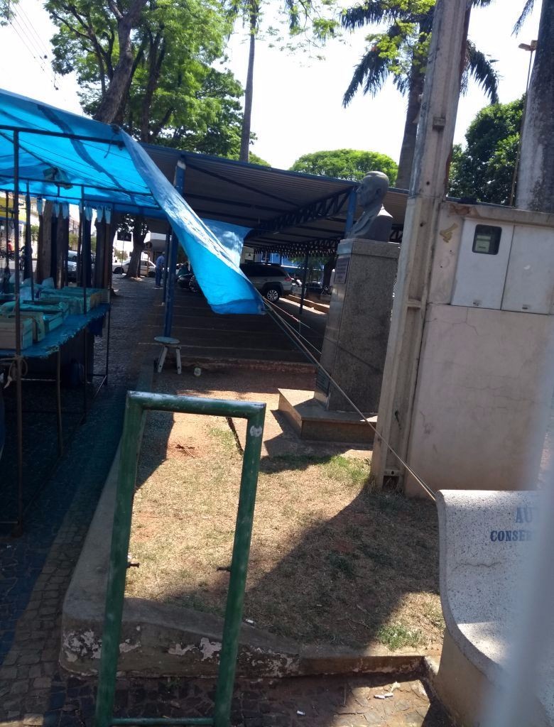 O edil explicou que vendedores ambulantes se instalam diariamente para comércio na referida praça e utilizam o busto do fundador do Município para amarrar as cordas que sustentam suas barracas.