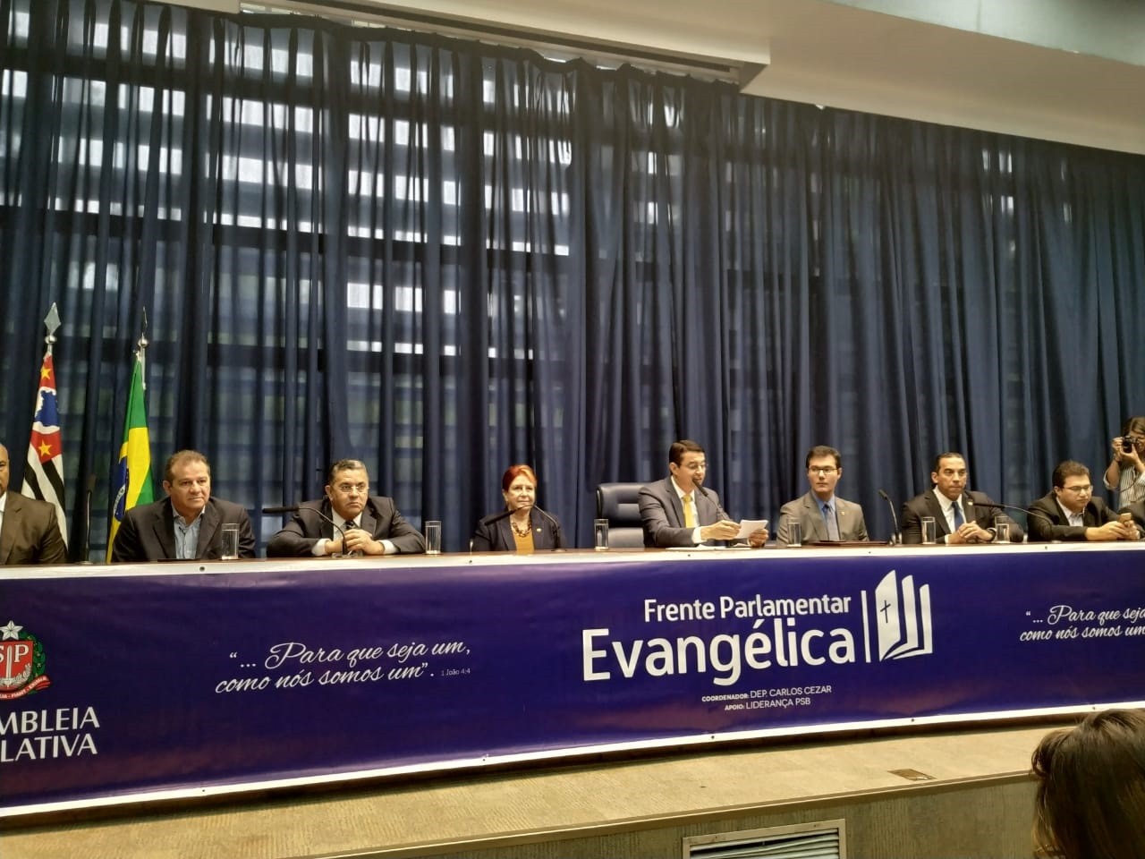 O vereador Celso Andrade Júnior (Pastor Celso) participou da cerimônia de lançamento da Frente Parlamentar Evangélica - FPE, realizada no dia 27 de junho, às 9h30, na Assembleia Legislativa do Estado de São Paulo - Alesp, no Auditório "Franco Montoro", a convite do coordenador deputado estadual Carlos Cezar.
