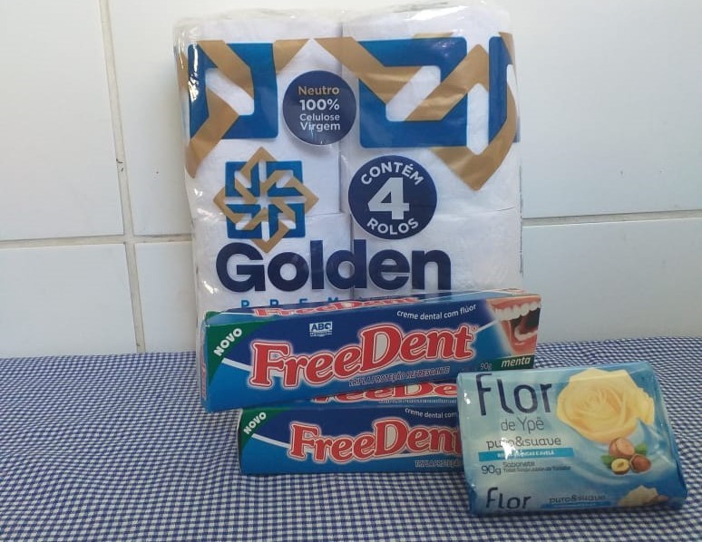 A cesta básica é composta por arroz, feijão, macarrão, óleo vegetal, sal, extrato de tomate, farinha, fubá, açúcar, sardinha enlatada, leite em pó, biscoito tipo água e sal e tipo maisena e tempero completo; o kit higiene é composto de pasta de dente, papel higiênico e sabonete.