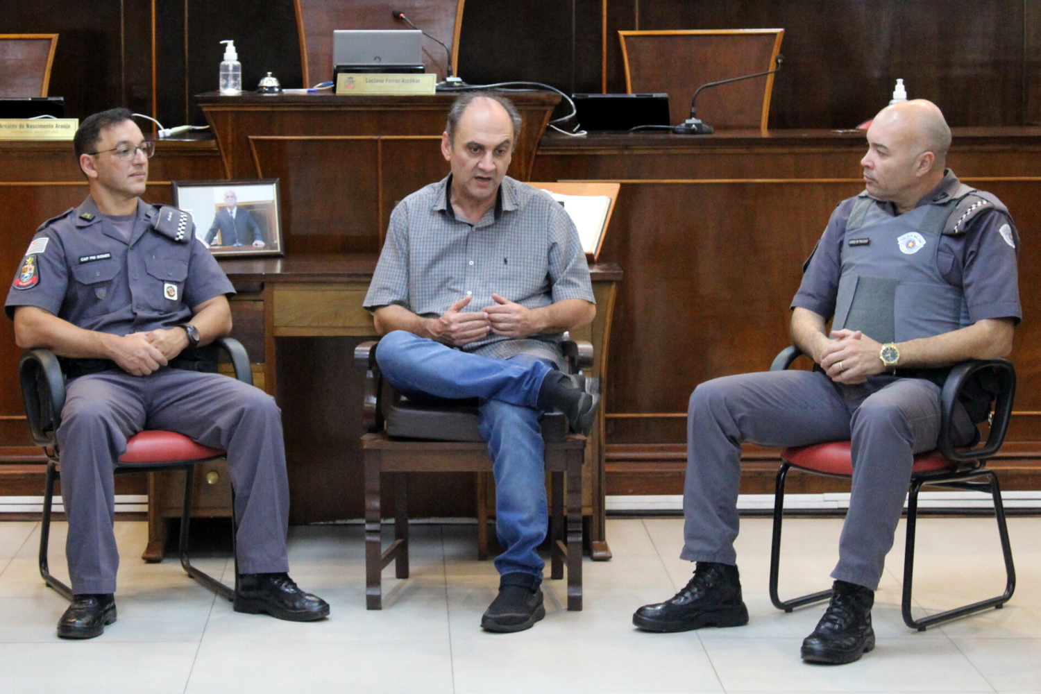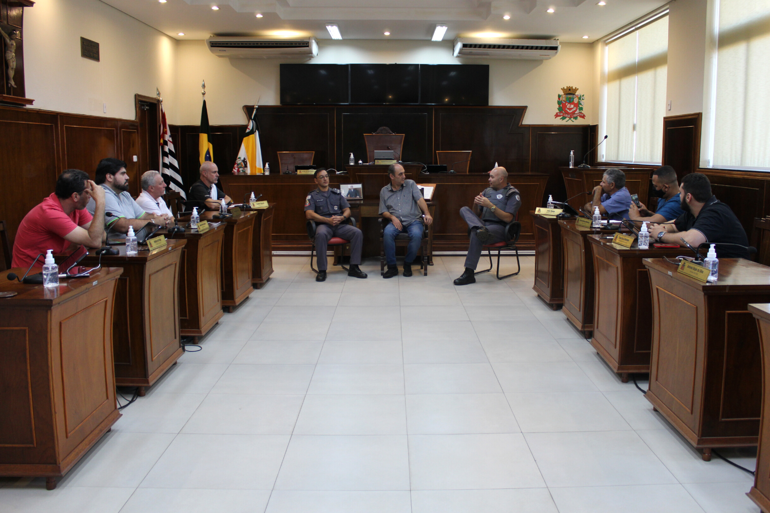 O Capitão Gomes solicitou a reunião para se apresentar aos edis, uma vez que assumiu o Comando da 2ª Cia recentemente. Na oportunidade, ressaltou o ótimo acolhimento que teve da comunidade e do Poder Público e, juntamente com o Subtenente Francisco, apresentou diversas informações sobre a segurança pública e a Polícia Militar do Município.