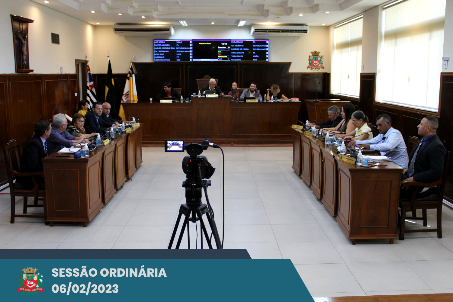 A Câmara Municipal realizou a primeira sessão ordinária de 2023, na segunda-feira (6), a partir das 13h. O Plenário analisou dois Projetos de Lei, 14 Requerimentos e duas Moções; todas as propostas foram aprovadas por unanimidade.
