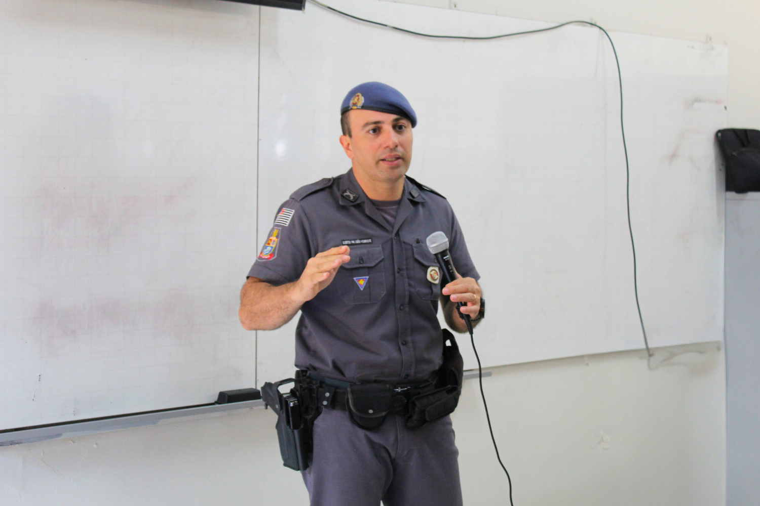 O palestrante foi o Subtenente da Polícia Militar João Henrique Arosti, que apresentou aos jovens uma série de assuntos que permeiam a segurança no trânsito, que envolve pedestres, ciclistas, motociclistas e motoristas e o papel de cada um para um trânsito mais seguro; destacou a questão do controle emocional em situações de estresse no trânsito; falou sobre imprudências, distrações e negligências; uso de celular e bebidas alcoólicas; o uso de bicicletas, autopropelidos e patinetes elétricos; entre outros.
